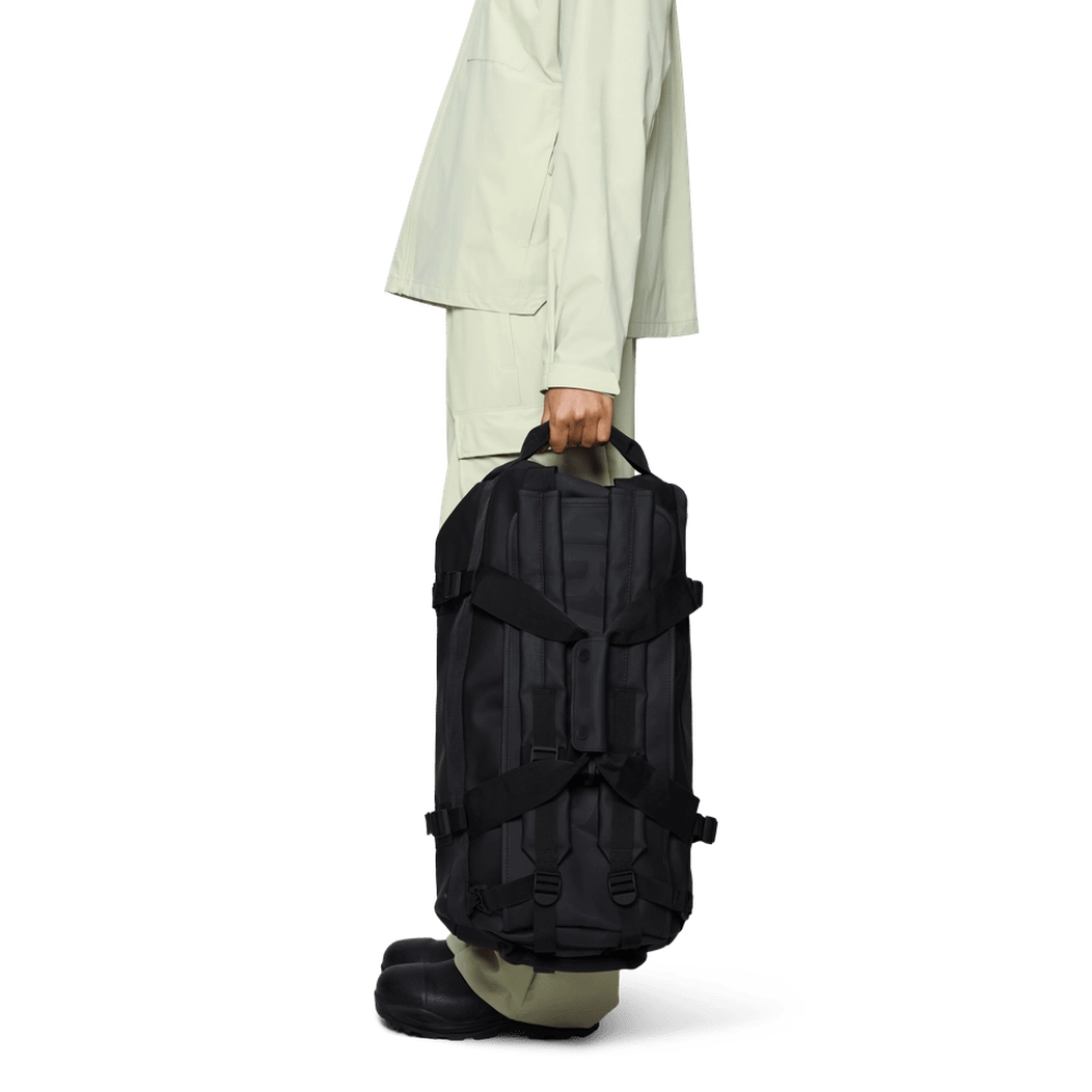 Il Texel Duffel Bag Small è costruito per offrire massima resistenza all’acqua e stabilità, grazie ai materiali iconici di Rains e al fondo rinforzato.
