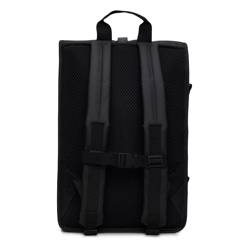 - Chiusura: sistema rolltop con l’iconica chiusura a moschettone Rains, garantendo sicurezza e flessibilità di carico.